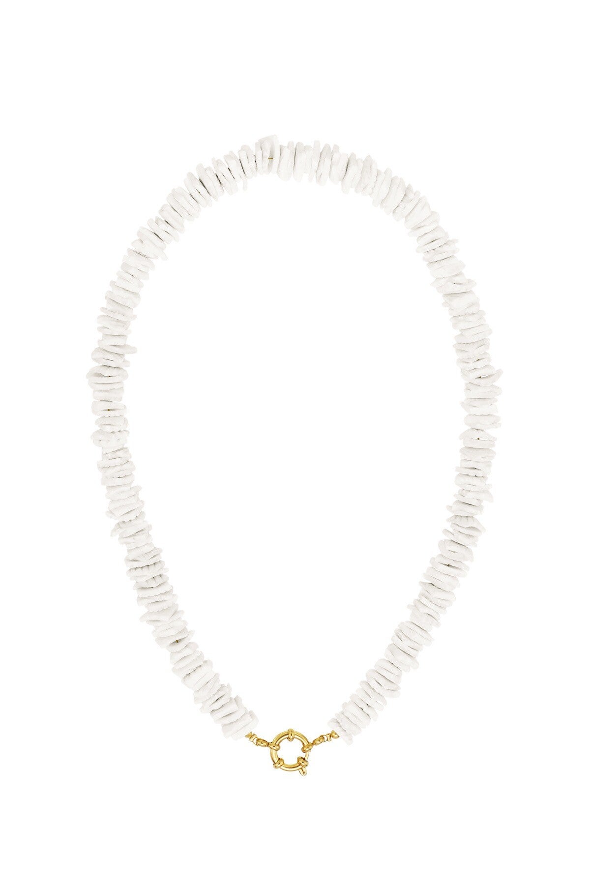 Een subtiele eyecatcher met een zonnige touch! Deze fijne witte ketting met goudkleurige zon-bedel voegt nét dat beetje extra toe aan elke outfit.
