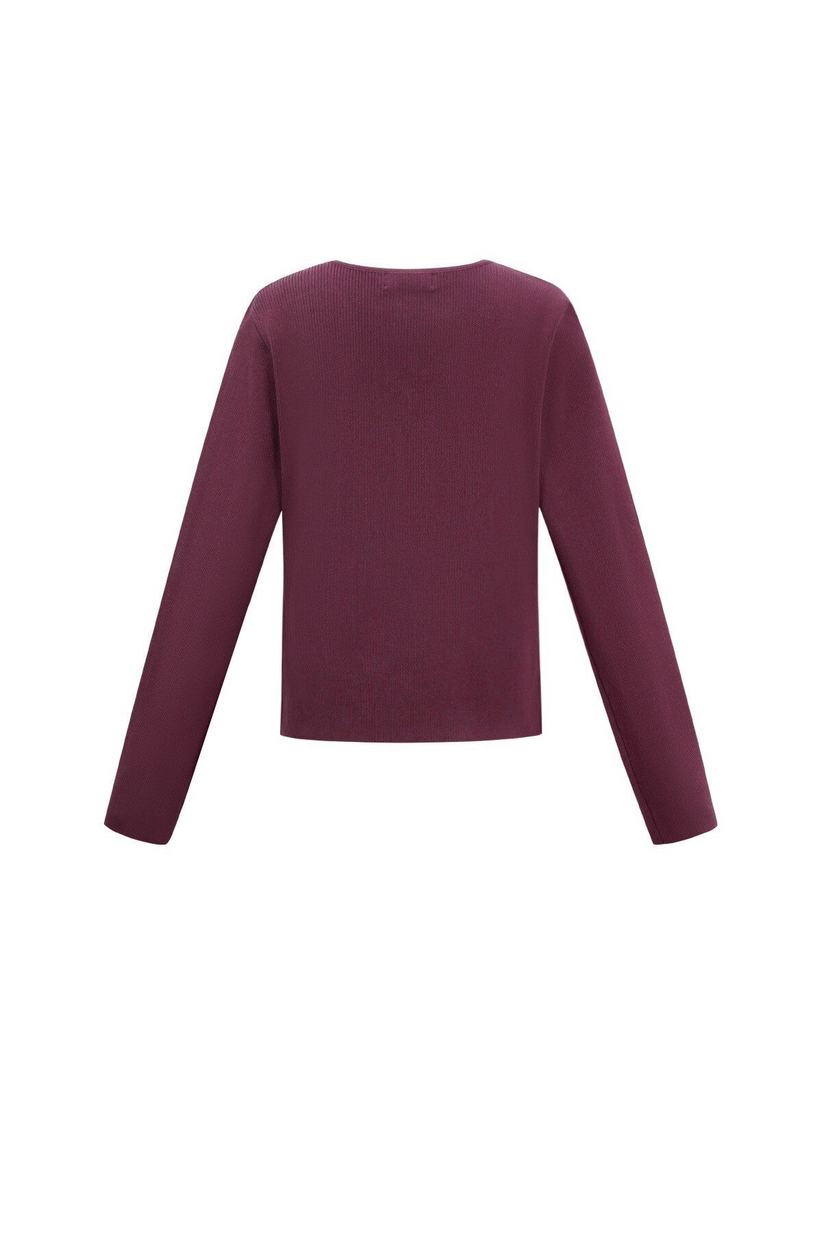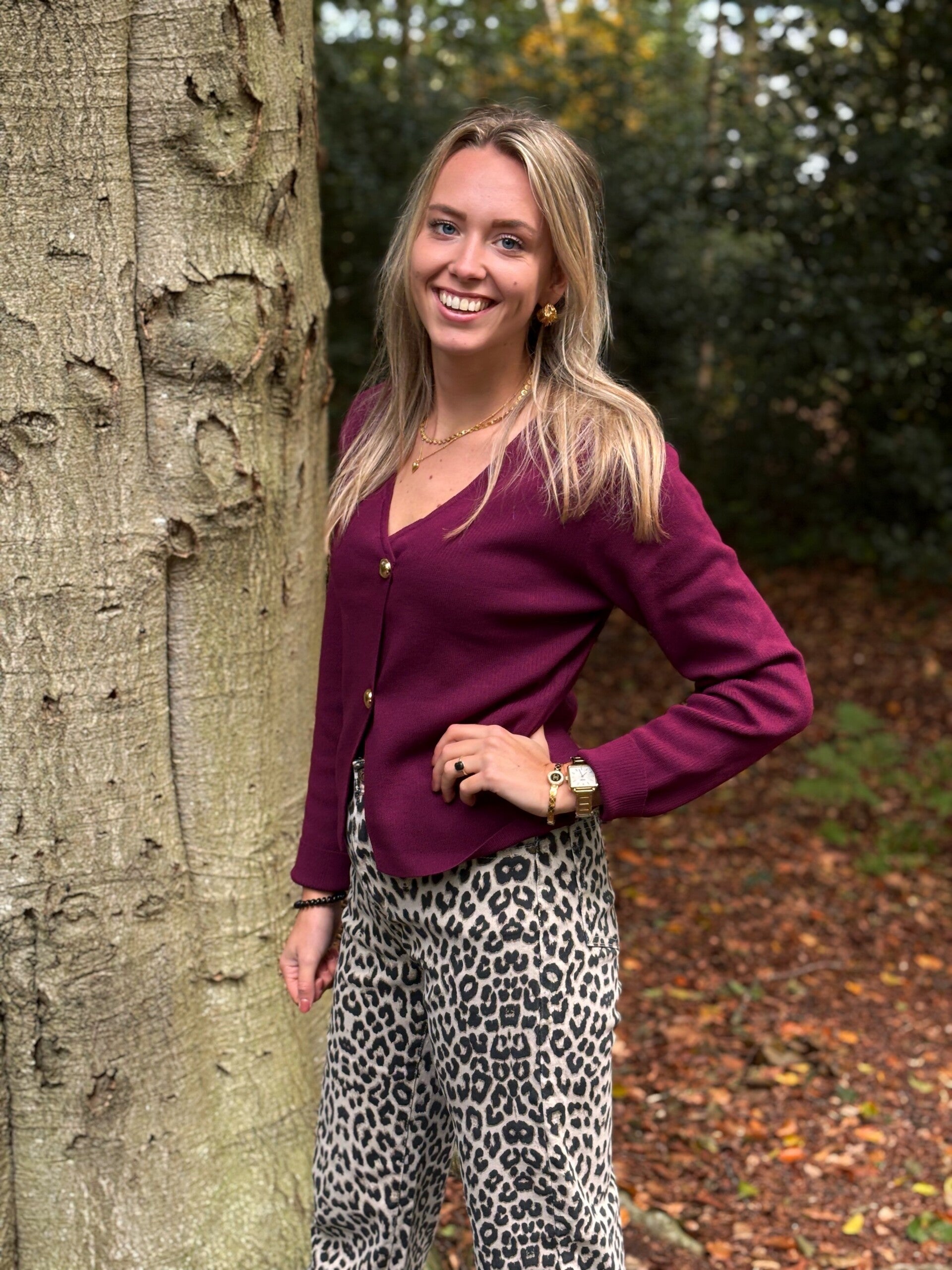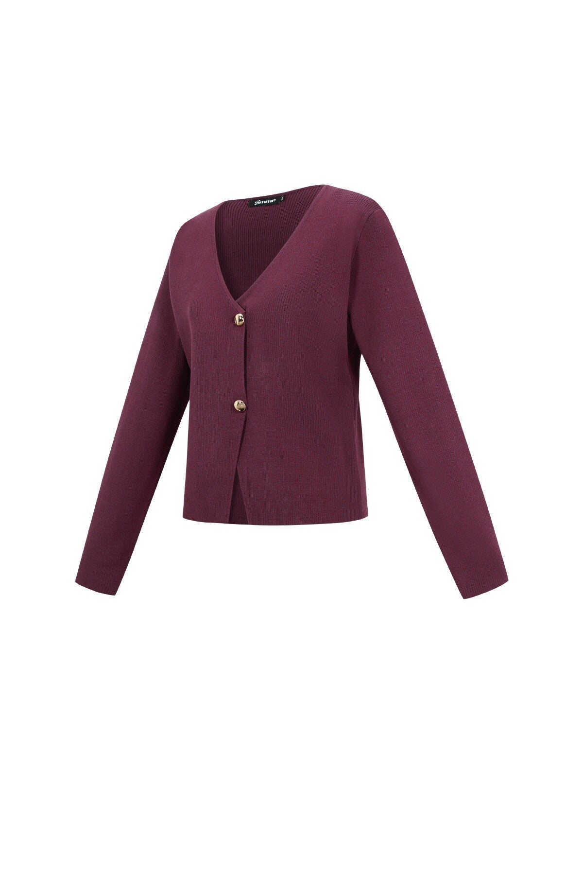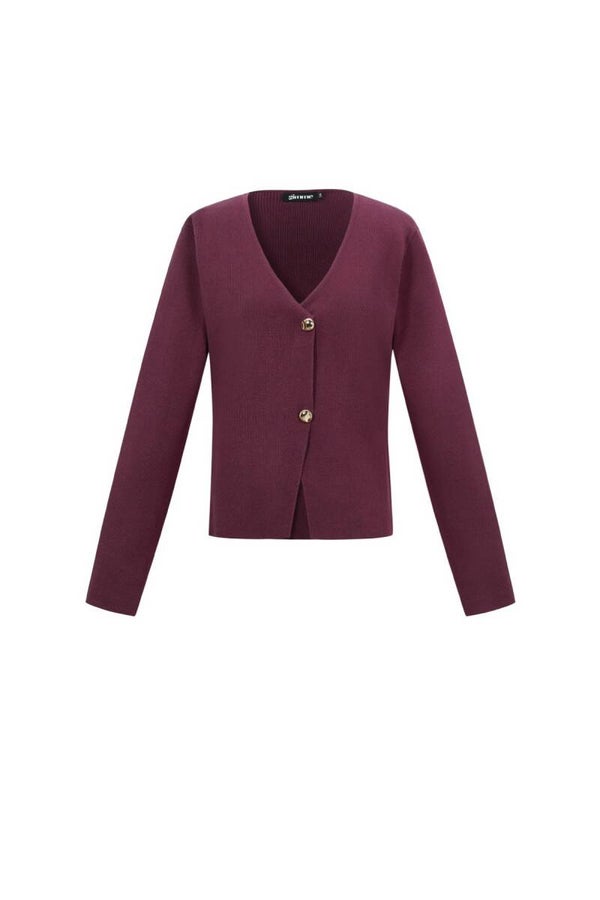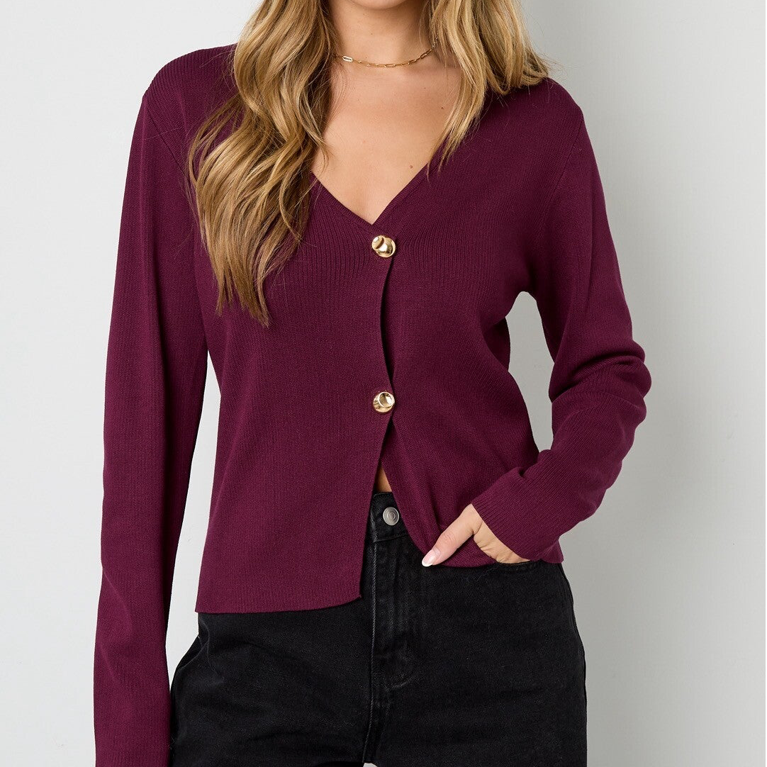 Met deze asymmetrische cardigan in de kleur bordeaux voeg je moeiteloos stijl en comfort toe aan je outfit. De asymmetrische voorzijde geeft een speelse en elegante twist, terwijl de rijke bordeaux tint zorgt voor een warme en chique uitstraling.