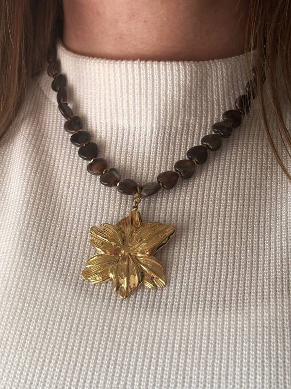 Of je hem nu draagt bij een casual outfit of als subtiel statement bij een chique look, deze ketting past altijd. Dankzij de neutrale aardetinten combineer je hem moeiteloos met andere sieraden en kledingstukken.
