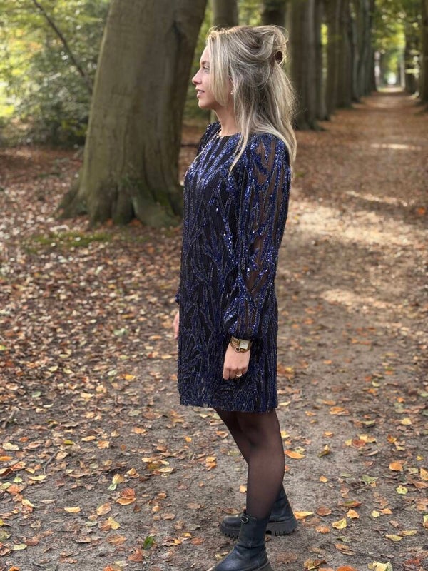 De perfecte jurk voor kerst of elke feestelijke gelegenheid. De subtiele blauwe glitters laten je stralen, terwijl de losse pasvorm heerlijk comfortabel zit. Een jurk die met je meebeweegt en waarin je gerust kunt genieten van het kerstdiner zonder je buik in te houden.