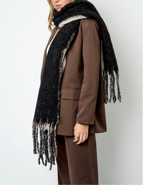 Ontdek onze zwart-witte lange sjaal: een tijdloos accessoire dat elke outfit direct een stijlvolle touch geeft. De zachte, warme stof draagt comfortabel, terwijl de extra lengte zorgt voor eindeloze stylingopties. Perfect voor zowel casual als chique looks.